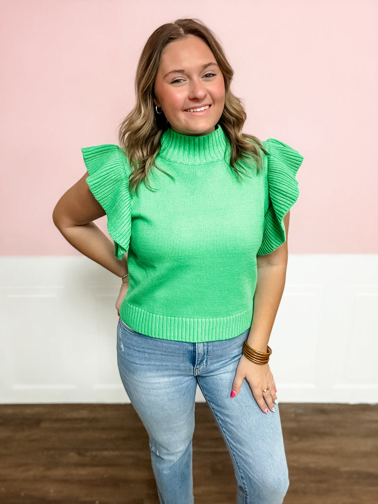 Emerald Ruffle Sleeve Knit Top