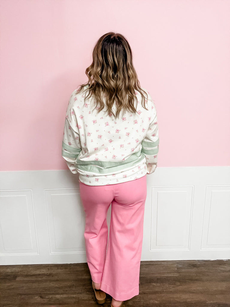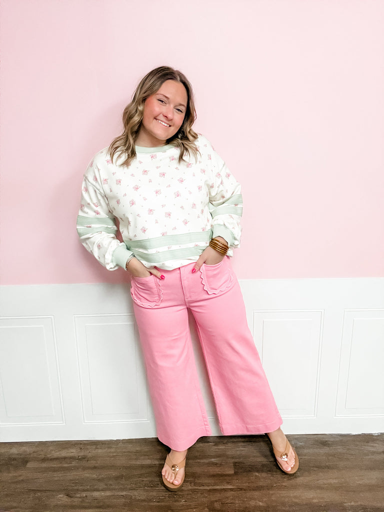 Soft, cozy, and sprinkled with the prettiest little florals—this pullover is an easy favorite. Featuring a relaxed fit, subtle stripe detailing, and the dreamiest pastel tones, the Lucky Petals Pullover is perfect for everyday wear. It’s comfy enough for running errands but cute enough for work or church days when you want to feel put-together without trying too hard. Pair it with denim or leggings and call it a lucky find.
