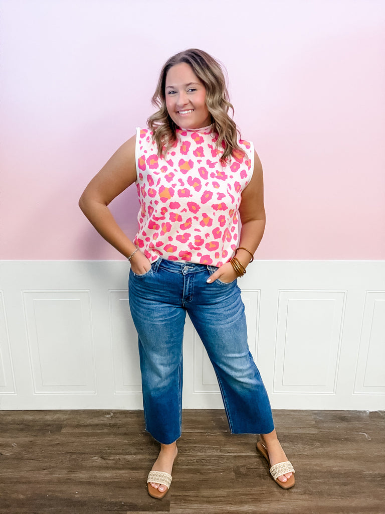 Game day, but make it chic. The Wild Spirit Sweater Tank features the sweetest pink leopard print with hints of orange throughout — giving you that perfect Clemson-inspired color combo without screaming it. The soft knit fabric feels cozy but lightweight, and the higher neckline keeps it polished and modest. It’s the perfect layering piece for early fall games — throw it on with white denim now, then add a jacket as the weather cools down.