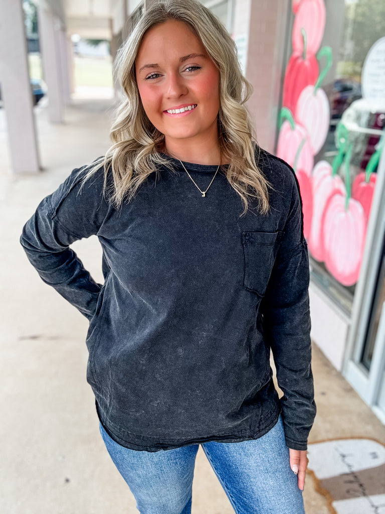 Meet the Midnight Drift Tee, your go-to for effortless everyday style. With its vintage-washed finish, slouchy pocket detail, and easy relaxed fit, this top gives you that worn-in look and lived-in comfort. Perfect for pairing with jeans, leggings, or layered under your favorite jacket, it’s the piece you’ll want on repeat all season long.