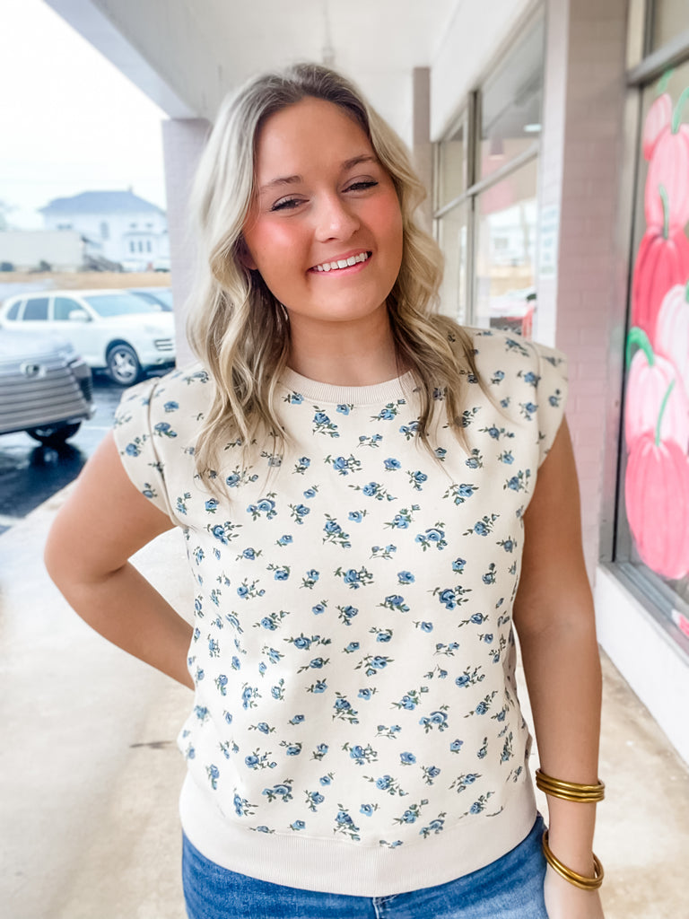 A sweet touch of vintage charm meets everyday comfort in this floral pullover. Featuring a soft cream base sprinkled with delicate blue blooms, it’s effortlessly feminine and oh-so-cozy. The relaxed fit and classic crew neckline make it perfect for layering over your favorite jeans or leggings. Ideal for cool mornings, casual outings, or adding a soft touch to your fall wardrobe.